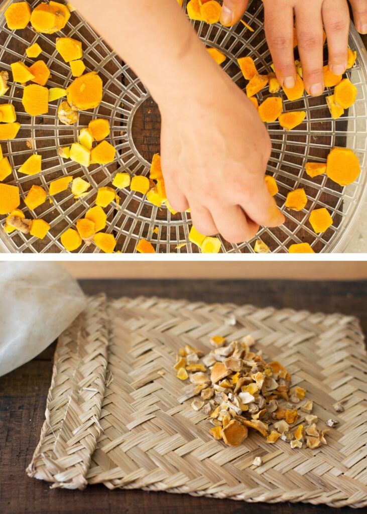 Tres. Vas a cortar los rizomas finitos y los vas a poner en alguna superficie donde puedan secarse. Puede ser arriba de un repasador viejo encima de un plato. Ojo porque mancha todo a su paso, es bien naranja. El tiempo de secado va a depender del sol, el mejor cocinero. Que les va a quitar el agua sin cambiarles la composición química. AMOR TOTAL. Yo lo deje 2 días al sol, del lado de adentro a una venta. Tiene que quedar bien seco, ojo acá.
